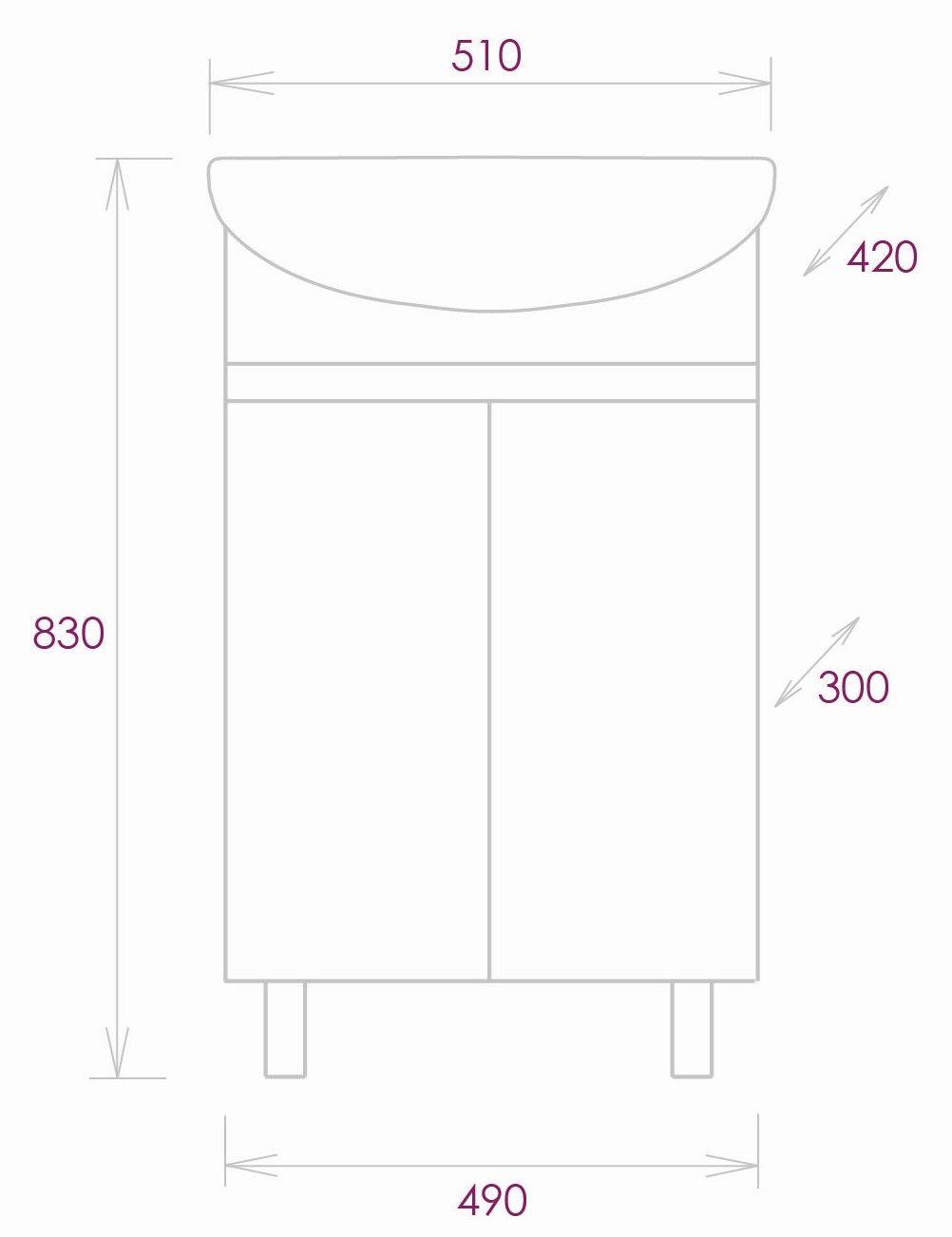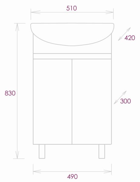 Размеры тумбы без учета раковины и ножек 49х30х68см.