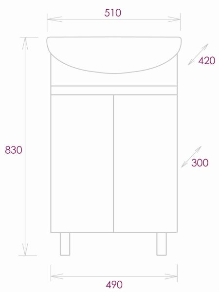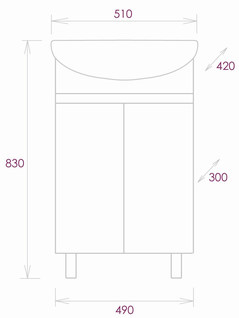Размеры тумбы без учета раковины и ножек 49х30х68см.