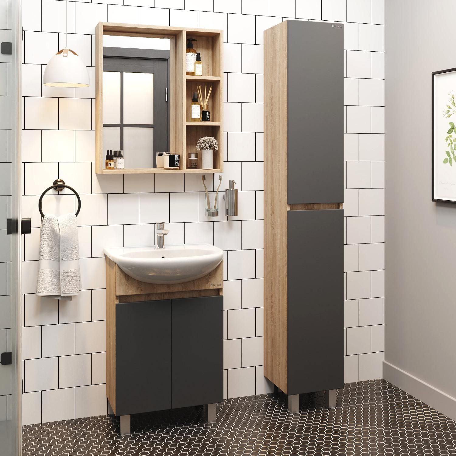 Напольная тумба под раковину Onika Милтон 105037 50см серый/дуб сонома купить