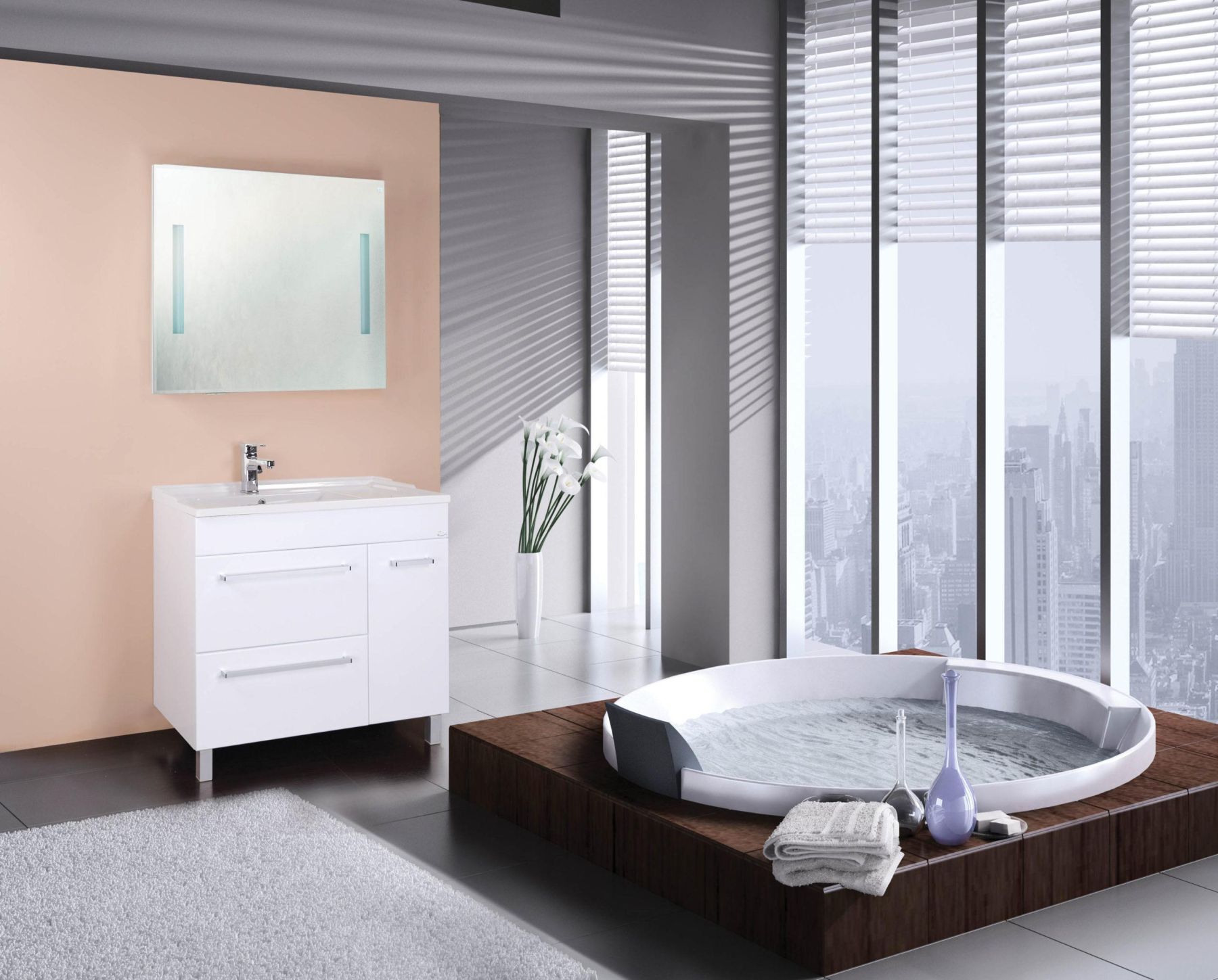 2 вместительных выдвижных ящика слева скроют от посторонних глаз все косметические и гигиенические средства, а пространство за распашной дверцей справа станет удобным местом для хранения различных бытовых принадлежностей.