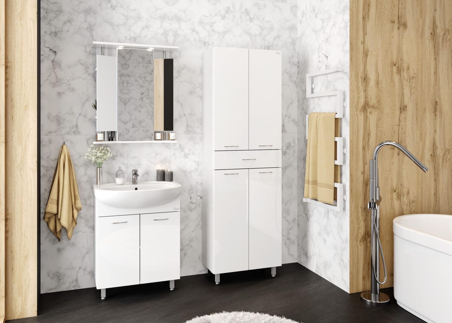 Тумба Onika Стелла 65 - достойный пример удобной мебели для небольшой ванной комнаты.