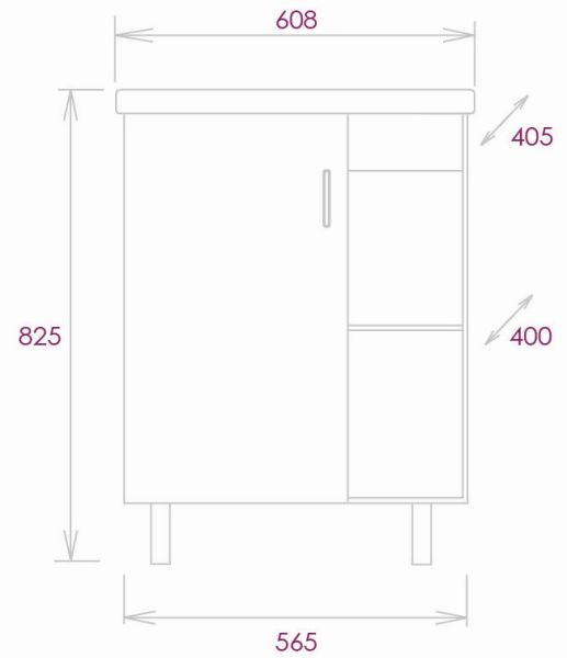 Размеры тумбы без учета раковины и ножек 56x40x68 cм.