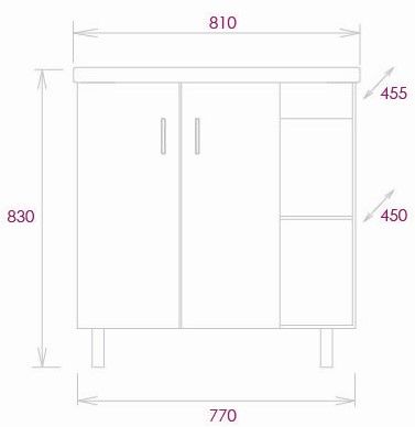 Размеры тумбы без учета раковины и ножек 77x45x68 cм.