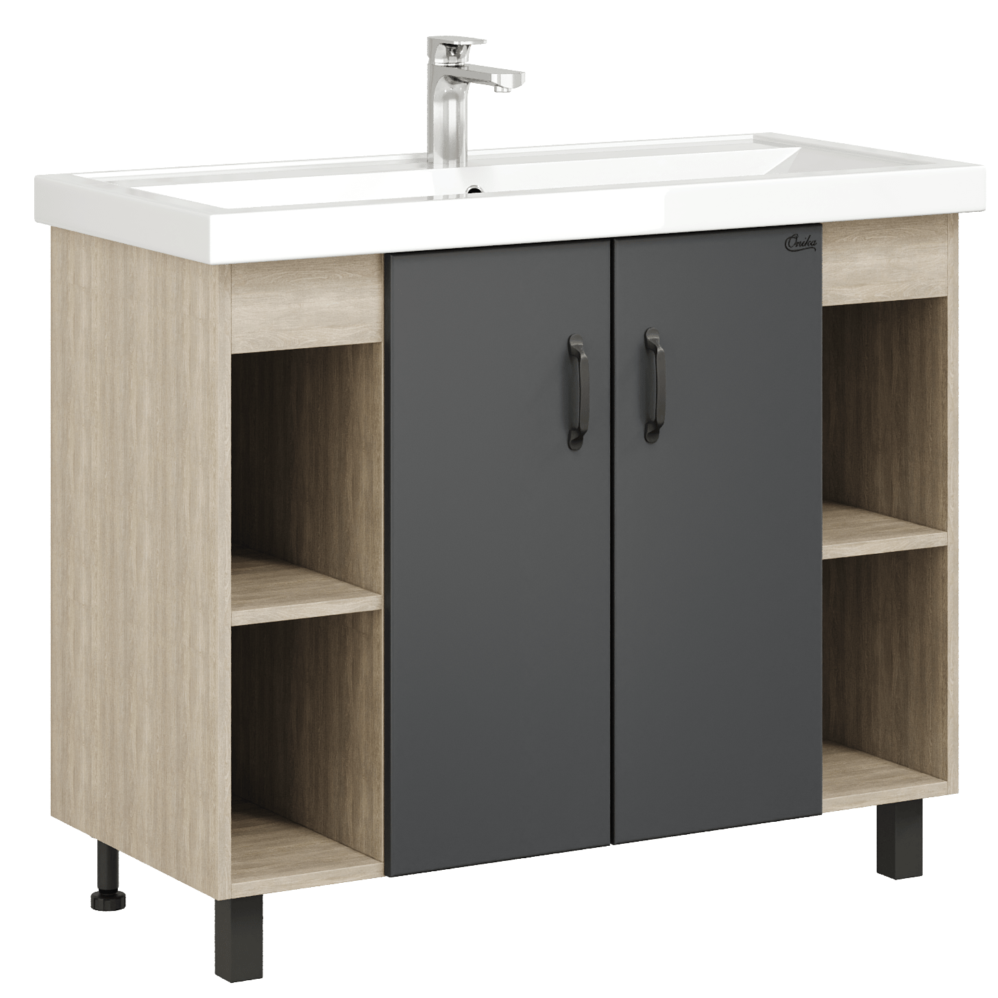Напольная тумба под раковину Onika Тимбер 110010 100см серый матовый/дуб сонома купить