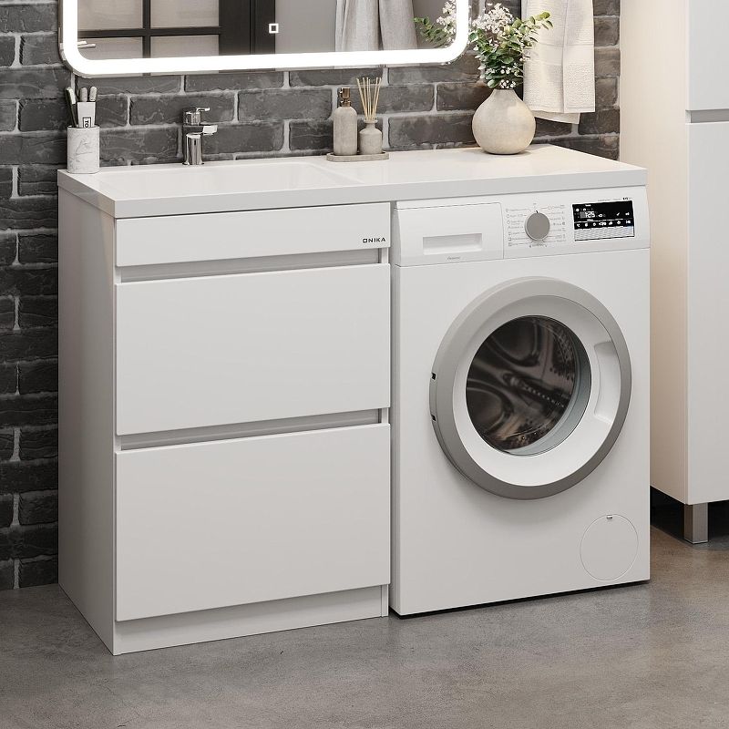 Напольная тумба Onika Милтон 48 станет отличным решением для совмещения со стиральной машиной.