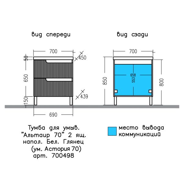 Тумба под раковину СаНта Альтаир 700498, 70 см, напольная, белый