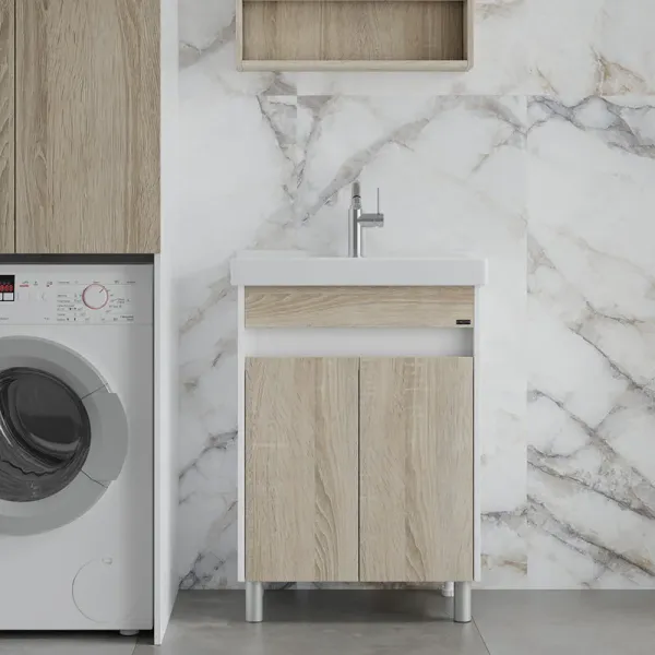 Тумба напольная Санта Мира 60 — это элегантная и функциональная мебель для ванной комнаты, которая станет отличным дополнением к любому интерьеру. Она изготовлена из ламинированного влагостойкого ДСП, что гарантирует её прочность и долговечность. Светлый цвет тумбы позволяет ей гармонично вписаться в любое пространство. Тумба Мира 60 изготовлена под фаянсовый умывальник Sanita Fest 60.
