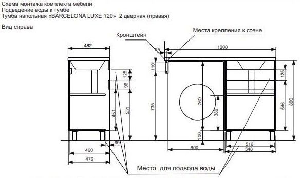 Тумба укомплектована раковиной из литьевого мрамора c глубокой чашей, плавными изгибами и вкладышем для слива. Раковина с большой столешницей удобная и функциональная. В тумбе 2 распашных дверцы со скрытыми ручками и полкой внутри, что делает использование максимально комфортным. Стиральная машина устанавливается под столешницей, за счет чего экономит место в ванной комнате.
