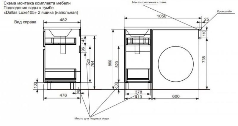 Напольная тумба с раковиной Эстет Dallas Luxe ФР-00009664 П 105см два ящика белый