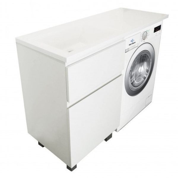 Коллекция мебели для ванной комнаты Dallas Luxe покоряет своей удивительной простой и функциональностью. Стильная лаконичная тумба, укомплектована раковиной из литьевого мрамора с удобной чашей. Стиральная машина устанавливается под столешницей, за счет чего экономит место в ванной комнате. В тумбе имеются два ящика. Нижний ящик тумбы – широкий и вместительный – предназначен для крупных предметов, а в верхнем имеется специальная организация пространства, позволяющая хранить мелкие вещи.