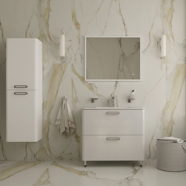 Тумба с плоским фарфоровым умывальником из популярной коллекции мебели Brick станет настоящим украшением для ванных комнат различной планировки в современном стиле. Сочетание белого глянца и сатиновых ручек делает коллекцию особенной. Напольная тумба Brick – невероятно удобное решение для тех, кому нужна модель с увеличенной вместительностью для хранения тяжелых предметов: больших пакетов со стиральным порошком и емкостей с бытовой химией.