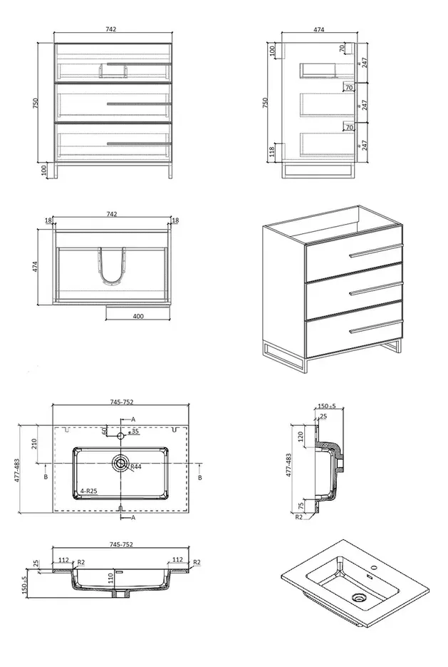 • Дизайн - минимализм, идеальное сочетание дизайна из трех! ящиков