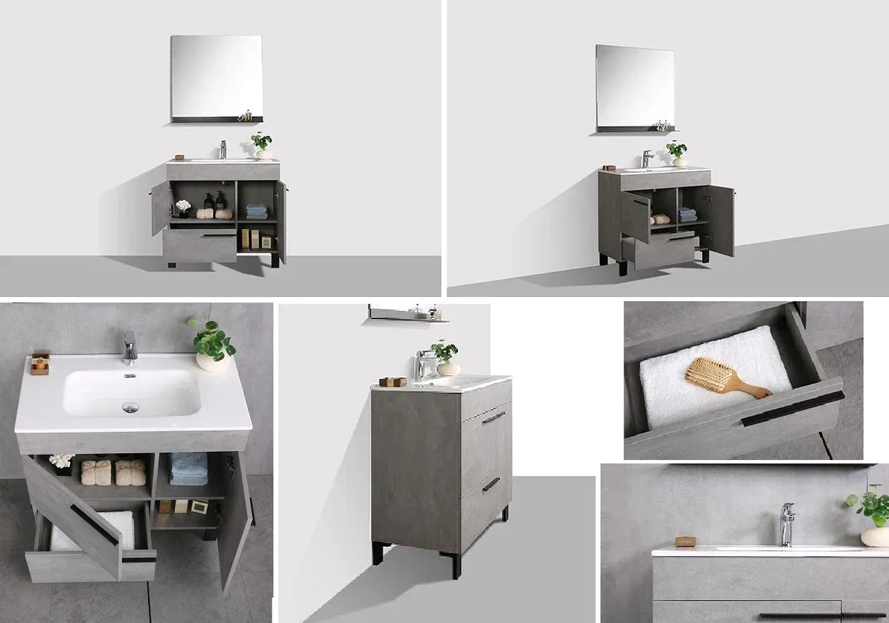 Теплый, простой, яркийЭтот скромный комплект мебели с тумбой в цементно-сером цвете с простым внешним видом, демонстрирующим красоту минимализма, оснащен различными передовыми технологиям, такими как плавное закрытие DTC, снижающее шум при закрытии и обеспечивающее тишину при использовании. Более того, в этом шкафу предусмотрено довольно большое пространство для хранения. Тумба