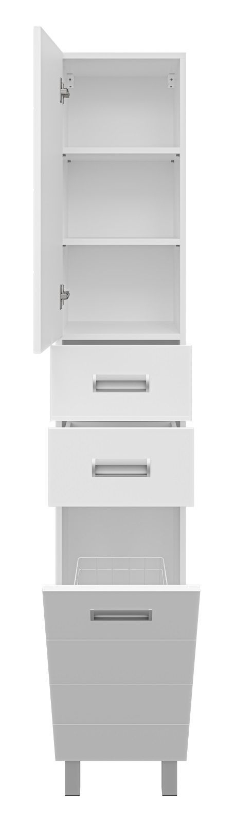Напольный шкаф - пенал Misty Селена левый 35см с бельевой корзиной белый