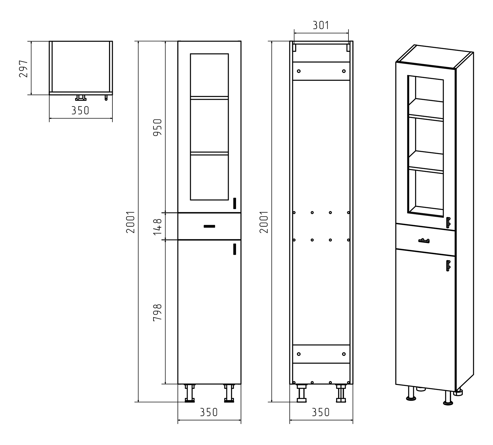 Напольный шкаф - пенал Misty Урал 35см левый белый
