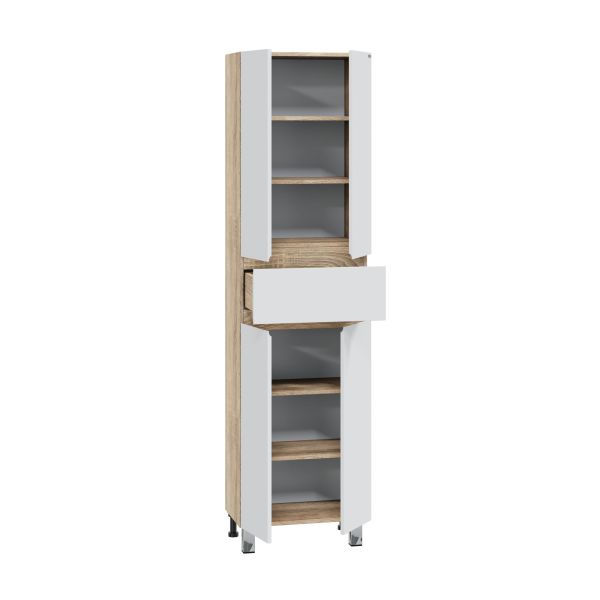 Шкаф-пенал для ванной СаНта Марс 50 напольный. Фасады шкаф-пенала для ванной комнаты и корпус колонны из влагостойкого ЛДСП. Фасады шкаф-колонны для ванной комнаты покрыты эмалью. Шкаф-пенал для ванны 50 см укомплектован съемными полочками из ДСП, двумя хромированными ножками и двумя пластиковыми. Петли у колонны с плавным закрыванием. Выдвижной ящик укомплектован шариковыми направляющими полного выдвижения (не плавного закрывания). Купить шкаф-пенал для ванны вы можете оставив заказ на нашем сайте. Шкаф-колонну вы можете приобрести в дополнение к тумбам из коллекции Санта МАРС