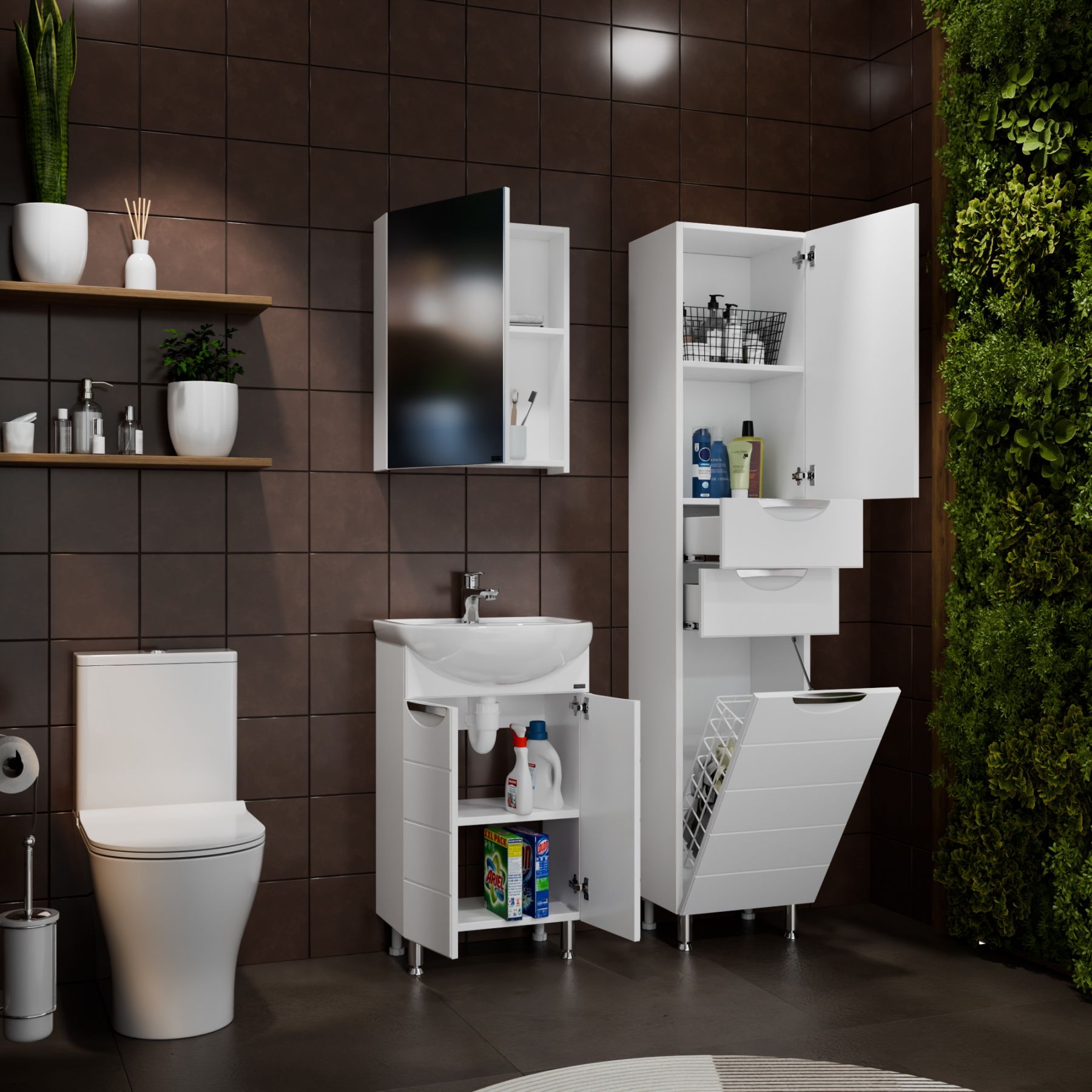Напольный шкаф-пенал Санта Родос 506005 40 см с бельевой корзиной белый