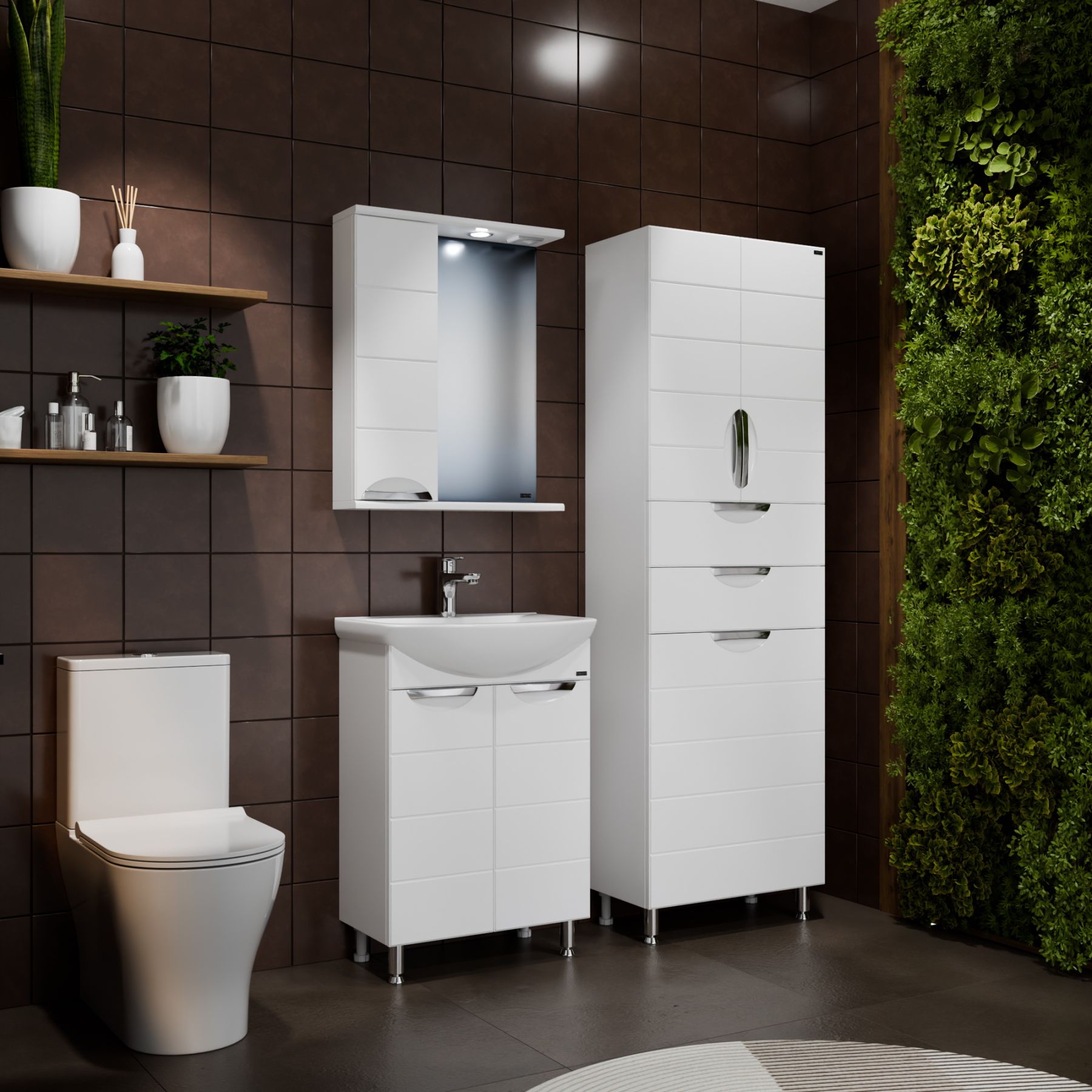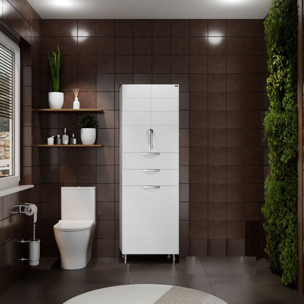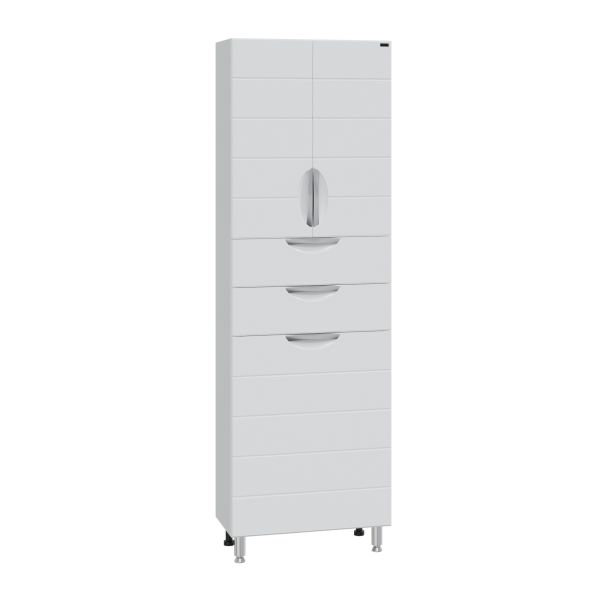 Комплектация: ручка хром - 5 шт., на дверках петли плавного закрывания - 4 шт., выдвижной ящик с шариковыми направляющими полного выдвижения - 1 шт., ножка хром - 2 шт., ножка пластик - 2 шт. Шкаф-пенал для ванной СаНта Родос 60 напольный. Фасады шкаф-пенала в ванную комнату изготовлены из МДФ, корпус колонны из влагостойкого ЛДСП.Фасад покрыт ПВХ пленкой. Пенал укомплектован несъемными полочками из ЛДСП, двумя хромированными ножками и двумя пластиковыми. Петли у колонны с плавным закрыванием. Открывание дверей распашное. Шкаф-пенал в ванную комнату вы можете приобрести в дополнение к тумбам из коллекции Санта Родос.