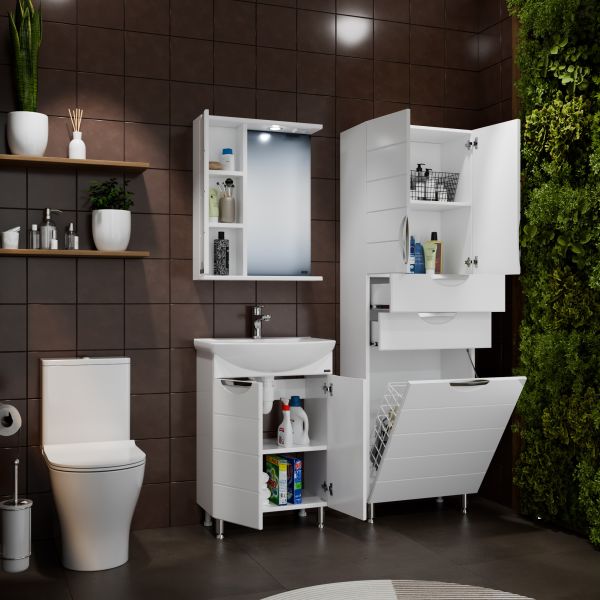 Напольный шкаф-пенал Санта Родос 506006 60 см с бельевой корзиной белый
