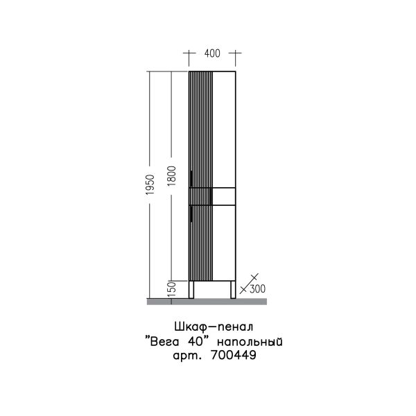 Шкаф-пенал для ванной Вега 60 напольный. Покрыт эмалью с вертикальной фрезеровкой фасадов.