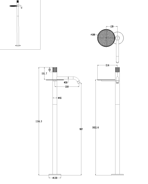 Напольный смеситель для раковины Boheme Stick Linea 120-BRB.3 брашированная бронза