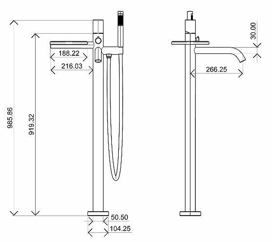 Напольный смеситель для ванны Boheme Stick 129-BG чёрный матовый/золото