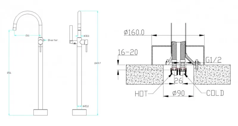 Напольный смеситель для ванны Boheme Uno 469-BRB брашированная бронза