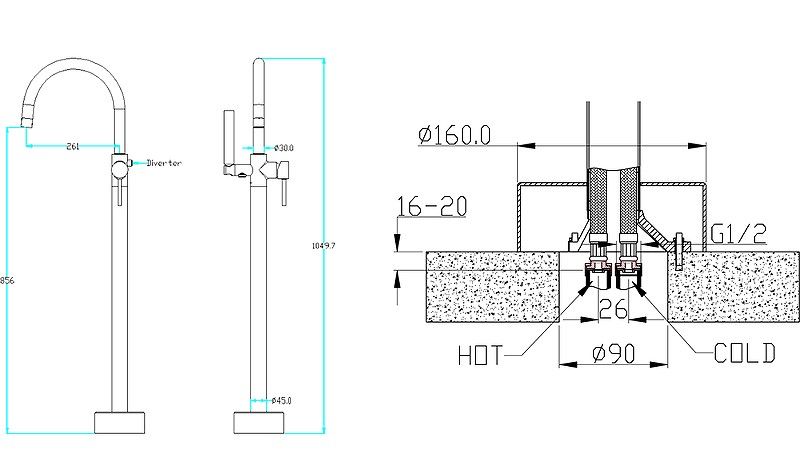 Напольный смеситель для ванны Boheme Uno 469-SGM антрацит глянец