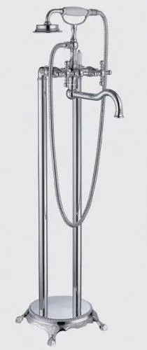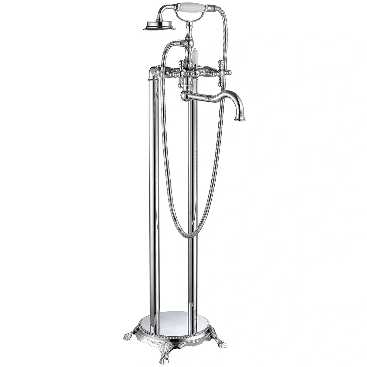Смеситель для ванны Gappo G3089 напольный — двухвентильная модель в ретро-стиле с отделкой "хром", с изящными опорами и поворотным изливом. Смеситель оснащен однорежимной душевой лейкой и шлангом.