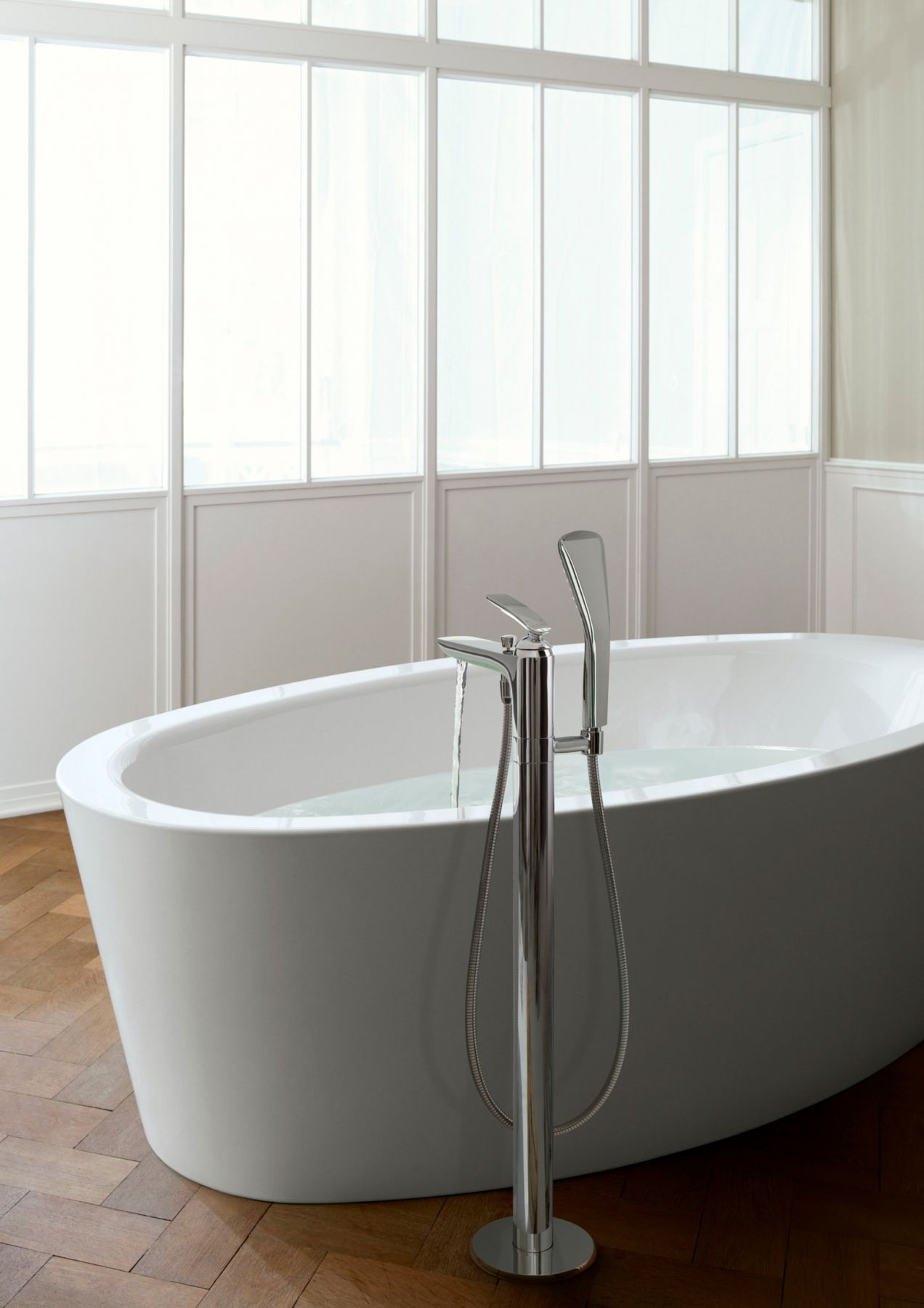 - вертикальный монтаж для отдельно стоящих ванн