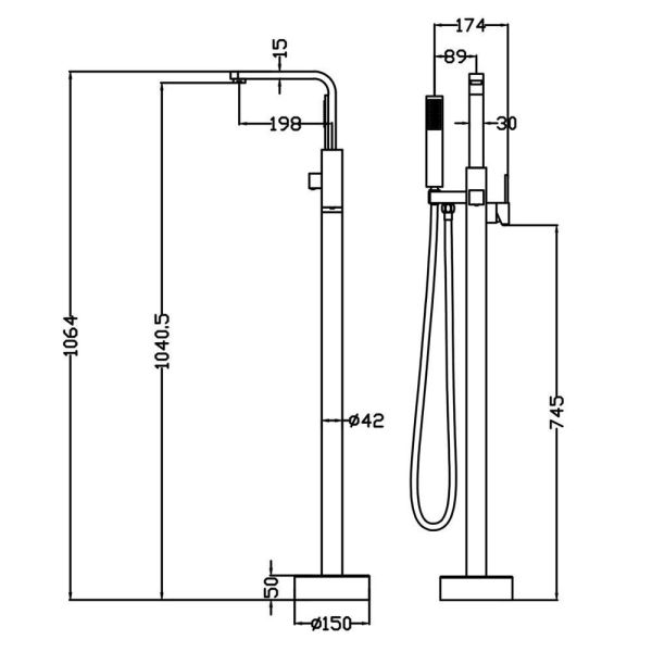 Смеситель для ванны напольныйМатериал: латунь