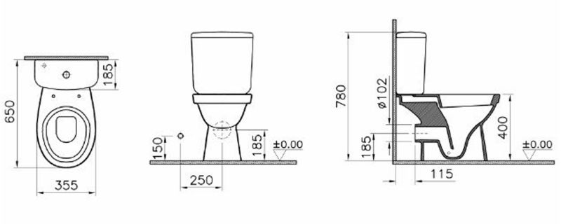 • Укороченный унитаз: