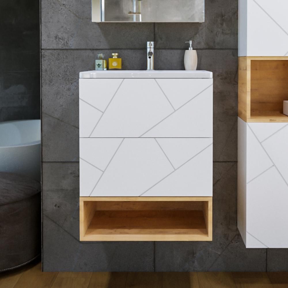 Полка для тумбы Бриклаер Кристалл 4627125415883, 60 см, подвесная, цвет дуб бунратти
