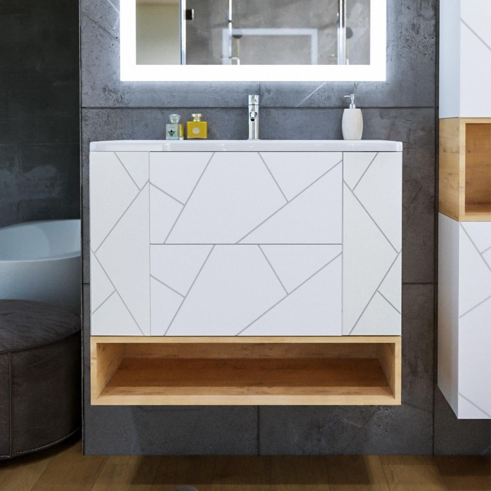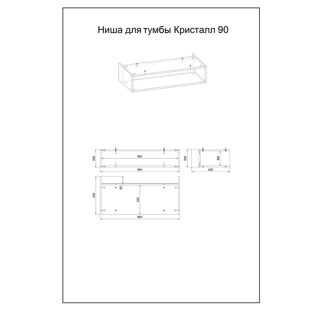 Полка для тумбы Бриклаер Кристалл 4627125415913, 90 см, подвесная, цвет дуб бунратти Ниша являе... Подробнее