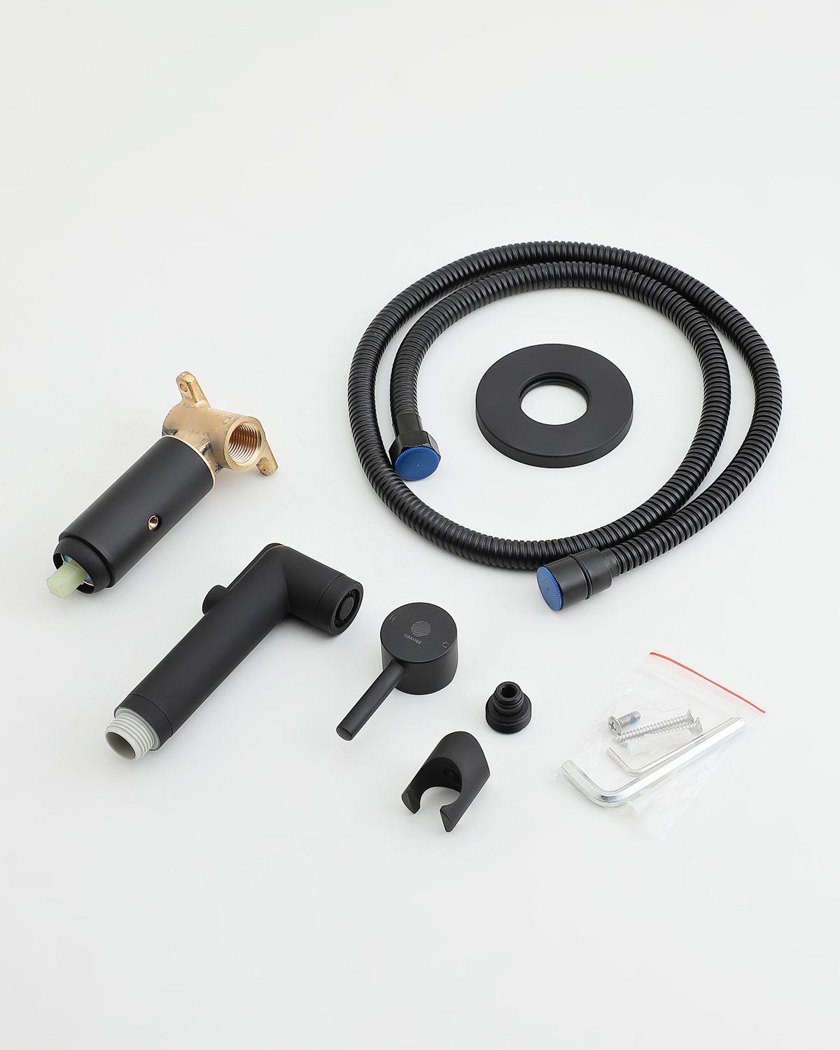 Смеситель скрытого монтажа с гигиеническим душем Orange Karl заинтересует всех, кто ценит строгие, четкие линии и интерьеры в стиле минимализм. Небольшой встраиваемый корпус занимает мало места и не требует больших углублений в стене. Декоративная розетка диаметром 8 см аккуратно закроет монтажные отверстия. Легкое управление напором и температурой воды подарит фирменный картридж Orange. Уход за покрытием в цвете матовый черный прост – достаточно регулярной очистки мягкой салфеткой. В комплекте гигиенический набор - гиг.лейка d 26 мм (1 режим струи) и шланг (120 см, в металлической оплетке, с защитой от перекручивая), держатель лейки на корпусе смесителя.