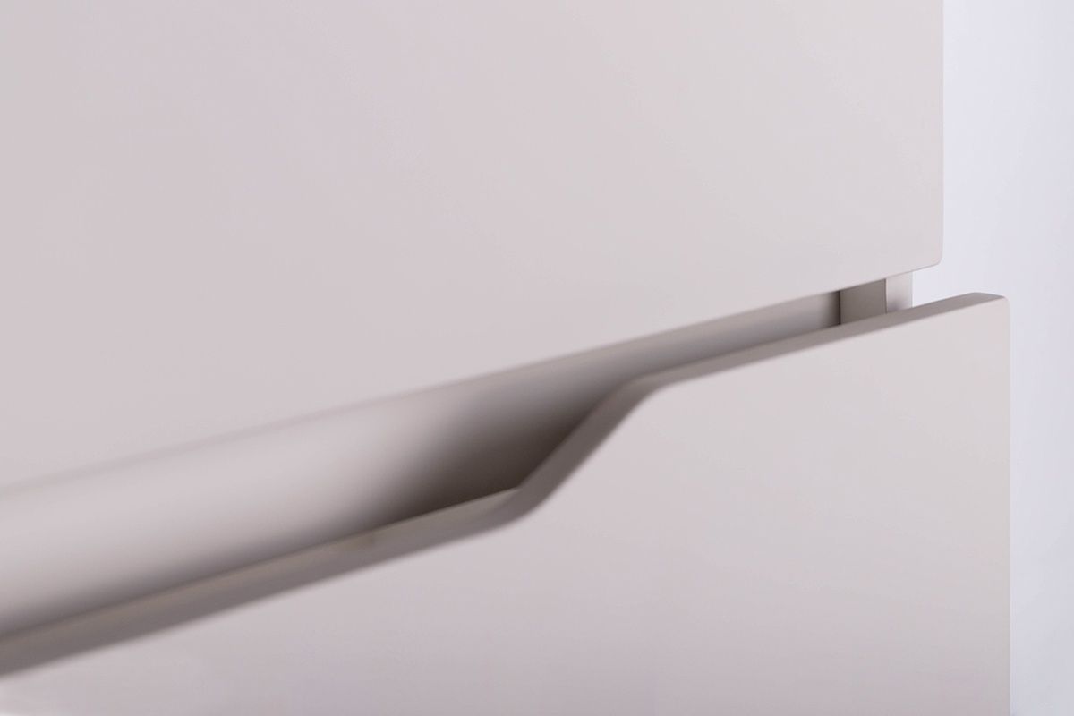Тумба Orange Line отличается современным дизайном. Изготовлена из МДФ высокой плотности. Мебель покрыта пленкой ПВХ с технологией Soft Touch — ламинация класса премиум, с повышенными тактильными свойствами. Пленка обеспечивает дополнительную защиту мебели от влаги и перепадов температуры. На ящики установлены комплекты скрытых направляющих Hettich, обеспечивающие полное выдвижение и имеющие встроенную систему плавного и бесшумного закрывания. Дополнительно в верхнем ящике установлен органайзер для мелких принадлежностей. Исполнение - матовое.