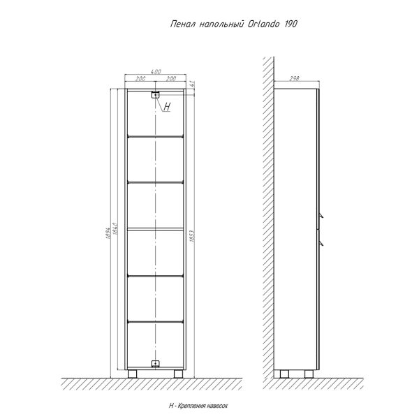Пенал (40см) Velvex Orlando pn.ORL.40, белый матовый