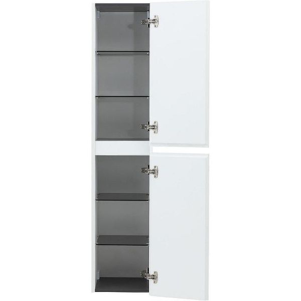 Особенностью данного пенала являются внутренние полки, выполненные из черного тонированного стекла. Это решение не только добавляет элегантности в общую композицию, но и визуально расширяет пространство, создавая эффект легкости. Шкаф-пенал Aquanet Альтера 34 белый матовый универсален в использовании: вы можете свободно изменять сторону открывания фасада, перенавесив его на противоположную сторону.