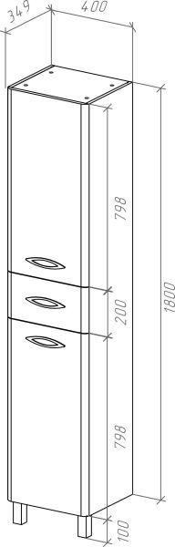 Пенал Bellezza Джела 40см правый белый 00000011254