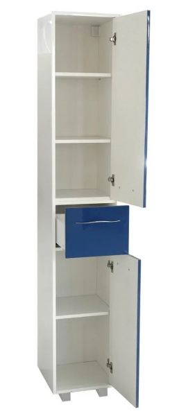 Коллекция Barcelona выполнена в стиле модерн. Плавные линии и формы подчеркивают элегантность комплекта, а разнообразие комплектации позволяет использовать мебель в качестве маркера вашего собственного стиля. Напольный пенал состоит из трех частей с распашными дверцами и ящиком. В верхней и нижней части пенала расположены полки, которые можно регулировать по высоте по мере необходимости, ящик предназначен для мелких предметов.Пенал белого цвета по умолчанию. Возможна покраска по палитре RAL.