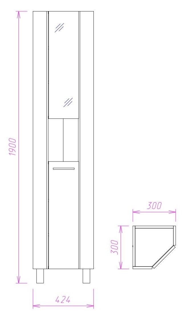 Напольный угловой шкаф пенал с зеркалом для ванной комнаты Onika ДЮНА 30 - настоящая находка для компактной ванной комнаты: он значительно экономит место без потери функциональности.