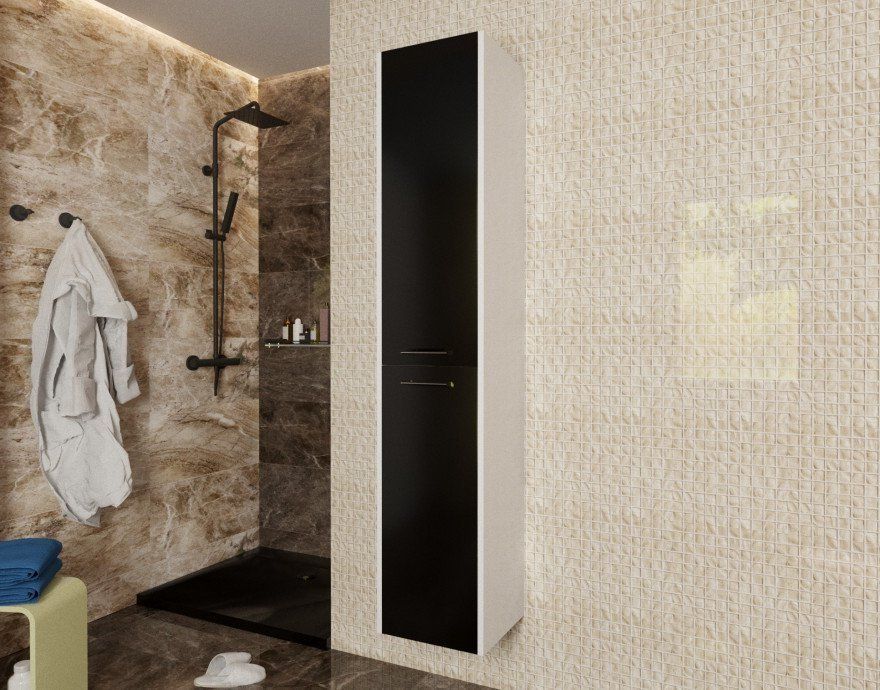 Коллекция Vegas разработана в современном стиле с учетом комфорта и функциональности. За счет вкладных фасадов мебель возможно выполнить в двухцветном исполнении абсолютно в любом сочетании (по каталогу RAL). Vegas дает возможность исполнить индивидуальное решение. Пенал состоит из двух частей. В верхней части расположены 2 полки для хранения бытовых принадлежностей. В нижней части пенала расположена полка, дополнительно возможна установка бельевой корзины.