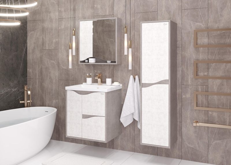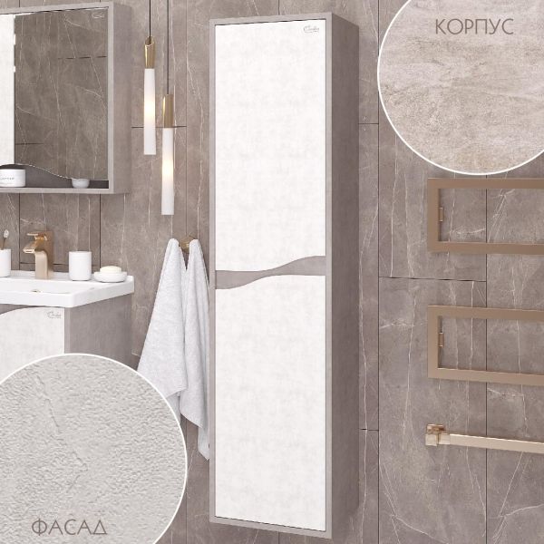 Подвесной шкаф пенал для ванной комнаты пенал Onika БРЕНДОН 35 поможет создать особенную атмосферу ванной комнаты: текстуры камня и бетона гармонично дополняют друг-друга, создавая сдержанный выразительный акцент в интерьере.