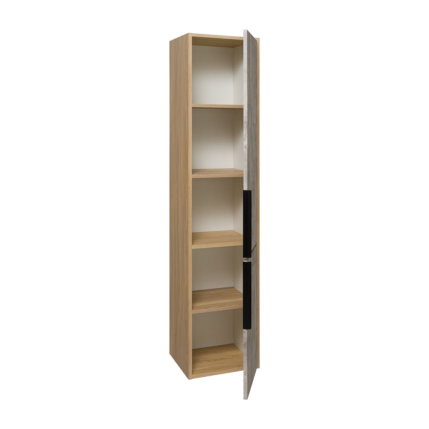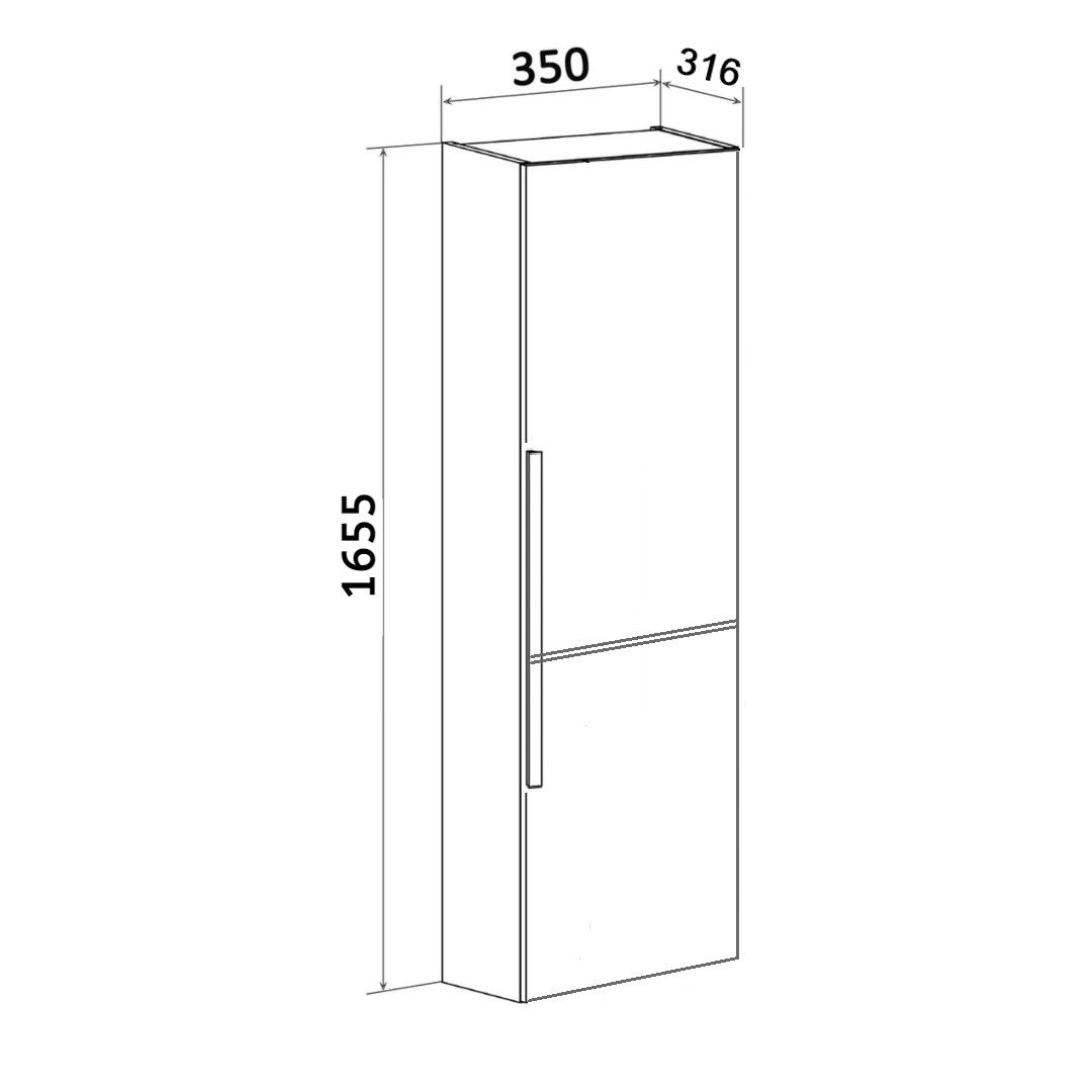 Шкаф-колонна подвесной имеет два отделения с распашными дверками. В верхнем отделении - две встроенные полки, в нижнем - одна. Выпускается только в правом исполнении.