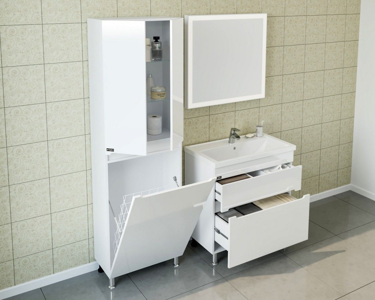 Пенал СанТа Лондон 524006 с бельевой корзиной 60см белый