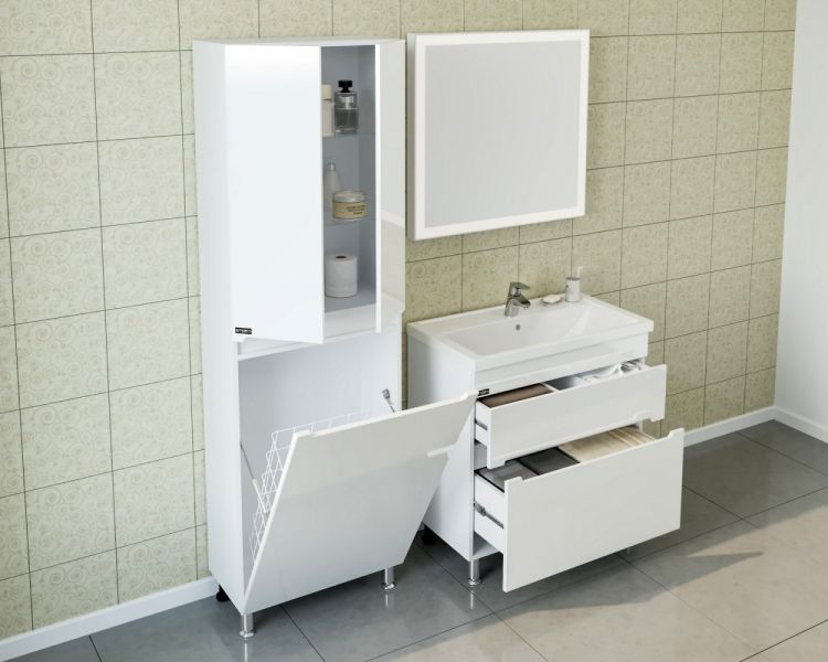 Пенал СанТа Лондон 524006 с бельевой корзиной 60см белый купить