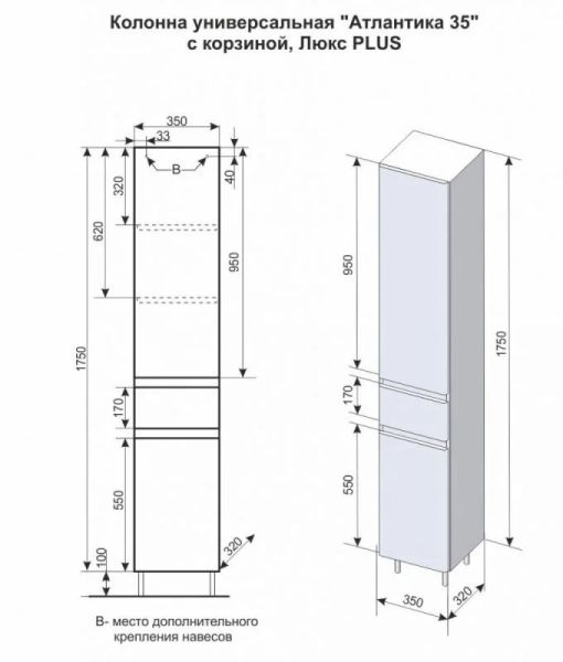 Пенал Style Line Атлантика Люкс Plus, 35 см, подвесной/напольный, старое дерево, СС-00002222Коло... Подробнее