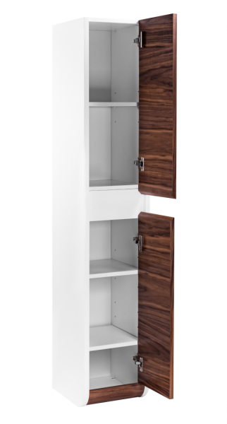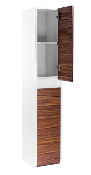 Серия VISION: Модульная система с натуральным шпоном Базовые элементы системы - Напольные пеналы (для бокового монтажа) - Арт. VSN000P-L (Левый): 310 ? 1600 ? 346 мм - Арт. VSN000P-R (Правый): 310 ? 1600 ? 346 мм ----------------------Ключевые характеристики Параметр Значение Конструкция Модульная (комбинируется тумба + пеналы) Корпус Влагостойкий МДФ с эмалевым покрытием Фасад Натуральный шпон лиственных пород Тип установки Подвесной (тумбы), напольный (пеналы) Система хранения 1 выдвижной ящик (в тумбе) + пеналы с полками Толщина МДФ До 20 мм (усиленная прочность) Нагрузка ящика До 40 кг (специальная фурнитура) Поверхность Полуматовая с текстурой древесины Цвета • Фасад: Дуб (натуральный шпон)• Корпус: Белый Фурнитура Полностью выдвижные ящики, регулируемые системы ----------------------Преимущества серии - Высокие пеналы (160 см) для хранения вертикальных предметов.? Гигиеничность: Подвесной монтаж тумб облегчает уборку.