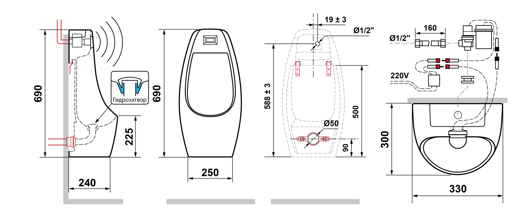Писсуар подвесной Laguraty ZT - 511 выпуск вертикальный белый купить
