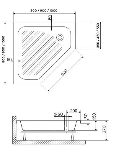 Высота поддона: 270 мм